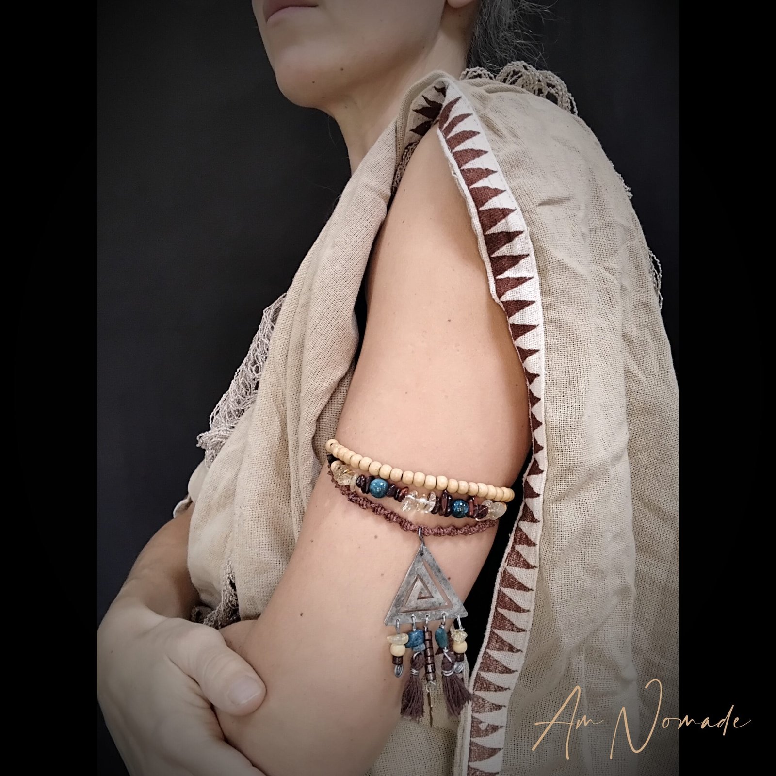 Bien que mes compositions puissent être plus ou moins complexes, tous mes bijoux restent légers et confortables à porter : c’est le cas de ce bracelet « Anima »