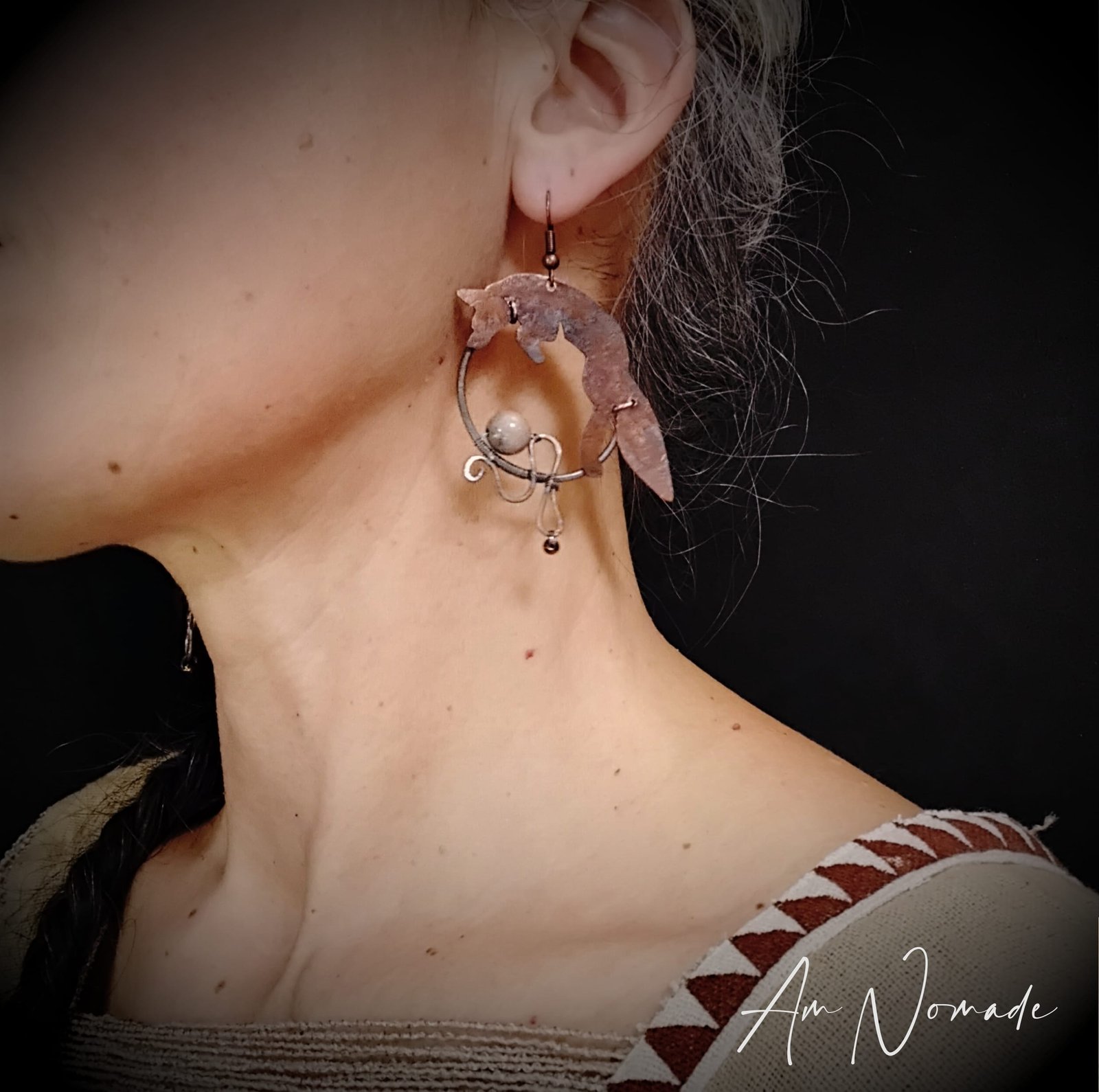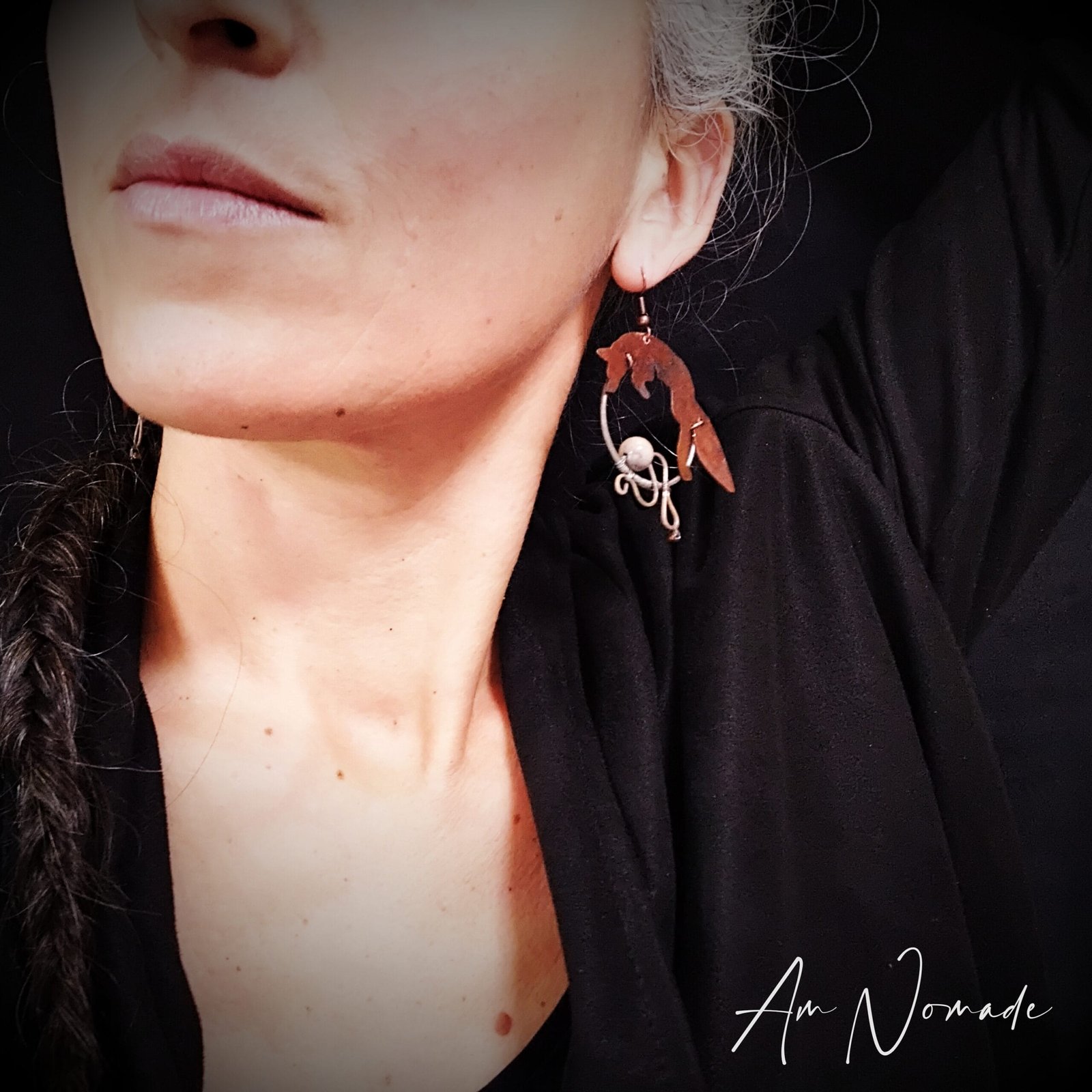 J’ai canalisé ces boucles d’oreilles lors d’une méditation de pleine présence lors de laquelle j’ai reçu la visite de nombreux esprits animaux. Esprit Renard en faisait partie…