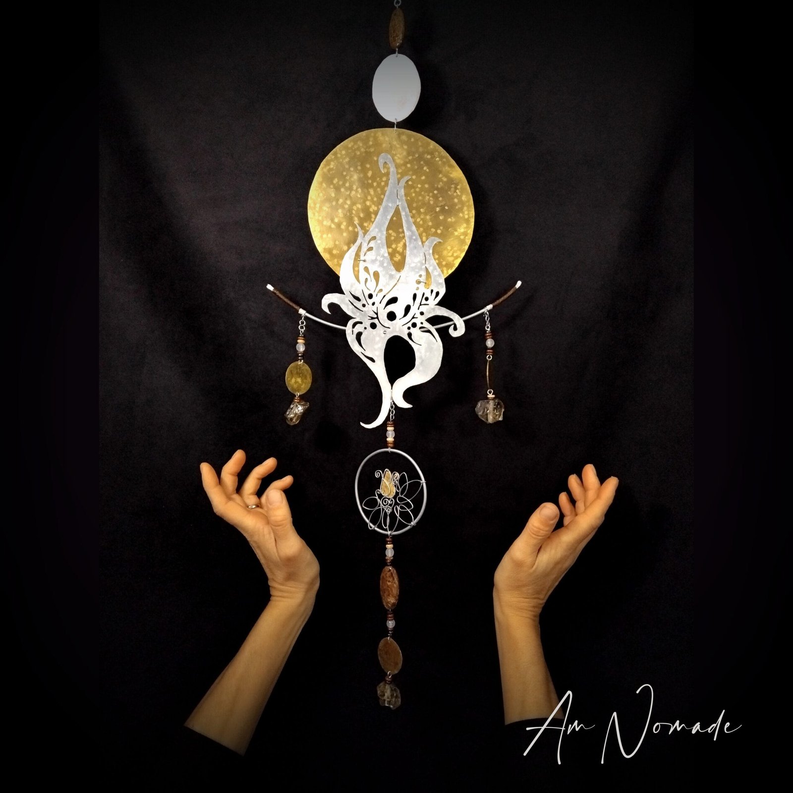 Comme à mon habitude, j’accompagne cette œuvre d’un texte écrit et signé Âm Nomade, également canalisé. Il exprime et traduit la vibration de la création.