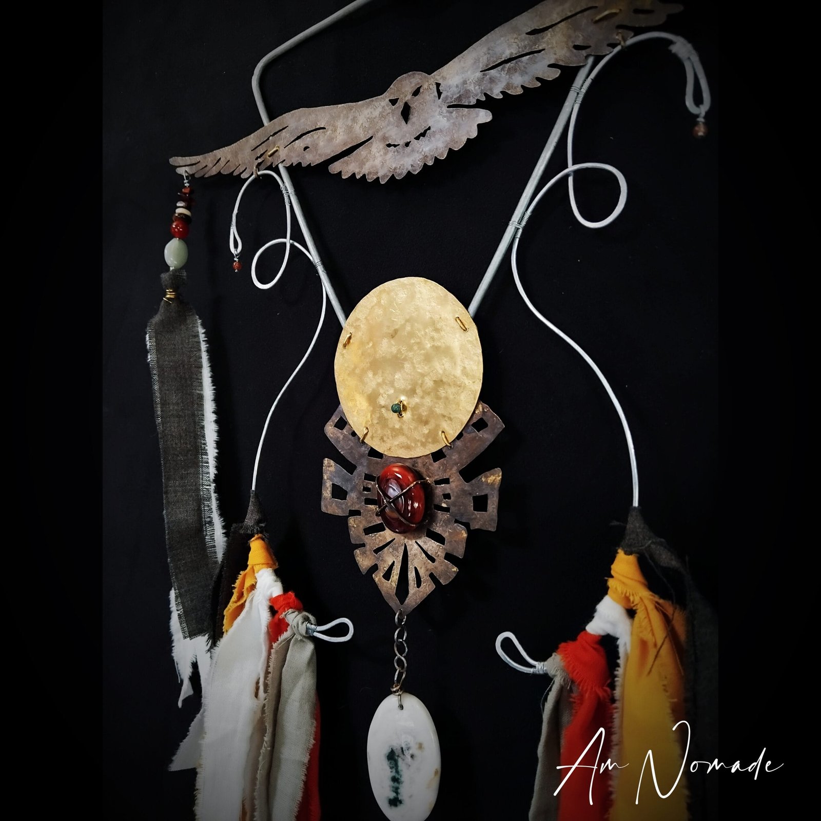 J’ai canalisé cette création lors d’une méditation de pleine conscience lors de laquelle j’ai vu cette aigle, face à moi, portant toutes ces couleurs dans un ciel haut et éthéré.